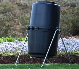 The Australian Tumbleweed Composter comes to America! The vertical tumbling action of the Tumbleweed Tumbler creates an aerobic environment that offers a quick and odorless form of off-the-ground composting. Patented design features a stainless steel rod that runs through the center, helping to break up and aerate compost with every tumble. A daily spin will produce 7-8 cubic feet in a few short months. The unit has two animal resistant twist-lock vented lids at either end, which allow for easy filling and emptying of the bin. Constructed of durable, UV-protected, 100% recycled polypropylene plastic. Keep contents moist, but not soggy. The rugged construction can withstand harsh climates. This composter works up to 4x faster than traditional, non-tumbling methods. Metal stand and complete instructions on how to make compost included. Capacity: 60 gallon Dimensions: 46"H x 26"W and 34"D Weight: 22 lbs Recommended by the National Home Gardening Club The manufacturer is currently out of stock. We expect new inventory the first week of December. You may place your order now and we will ship it as soon as it becomes available.